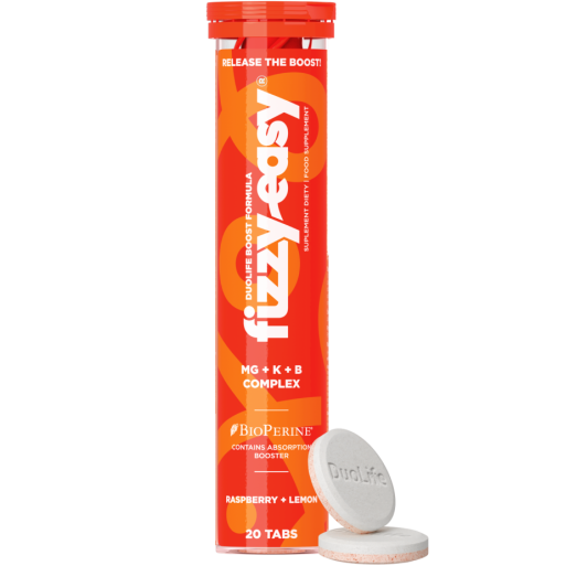 DuoLife Boost Formula FIZZY EASY Mg + K + B COMPLEX jsou šumivé tablety k přípravě osvěžujícího nápoje s ovocnou příchutí (malinovo-citronová příchuť).
